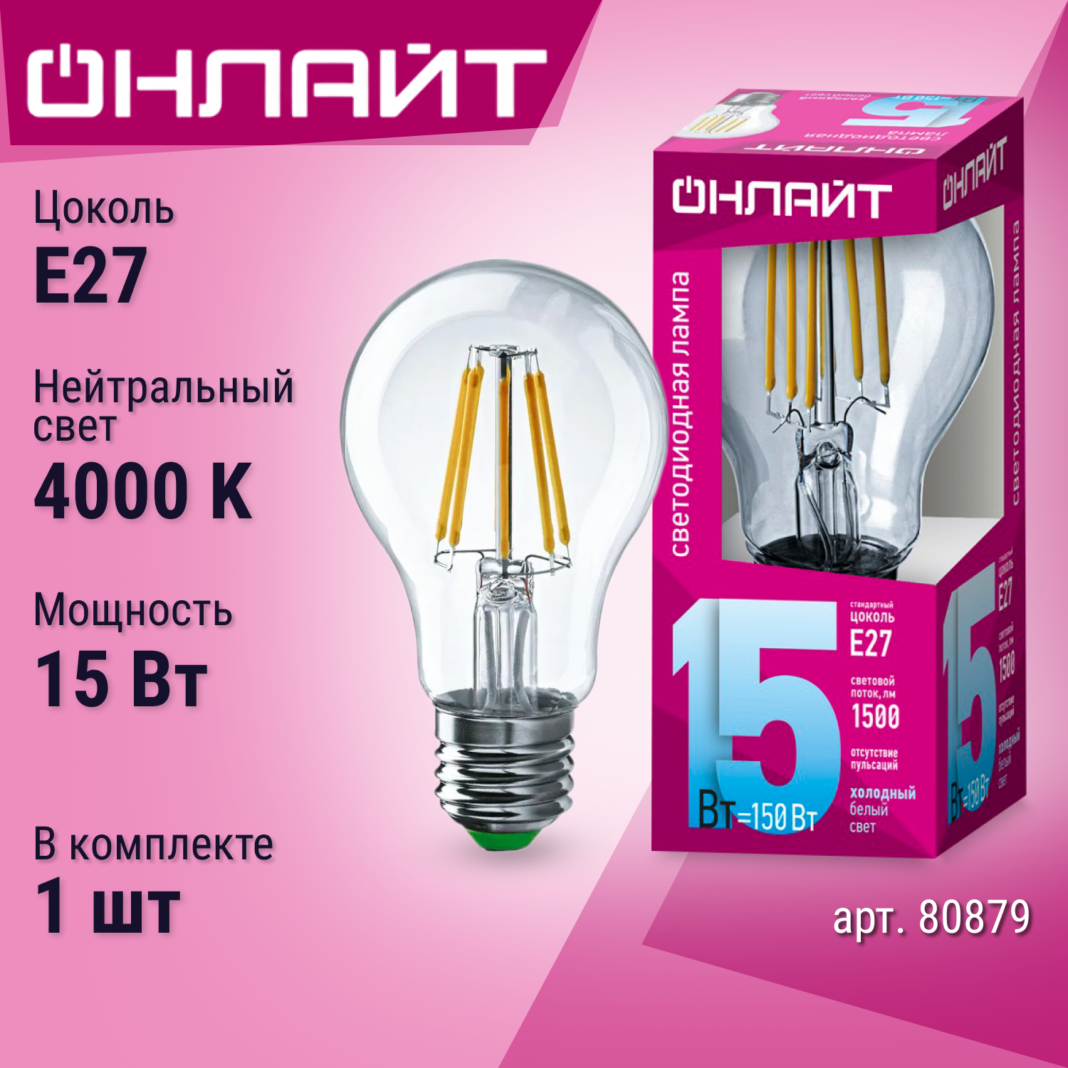 Ниже Вы можете прочитать отзывы на Лампа светодиодная E27 онлайт Груша, 15Вт, 4000К, лампочка 1 шт. 80879, ознакомится с подробными характеристиками, посмотреть интересные обзоры и фотографии на Лампа светодиодная E27 онлайт Груша, 15Вт, 4000К, лампочка 1 шт. 80879.