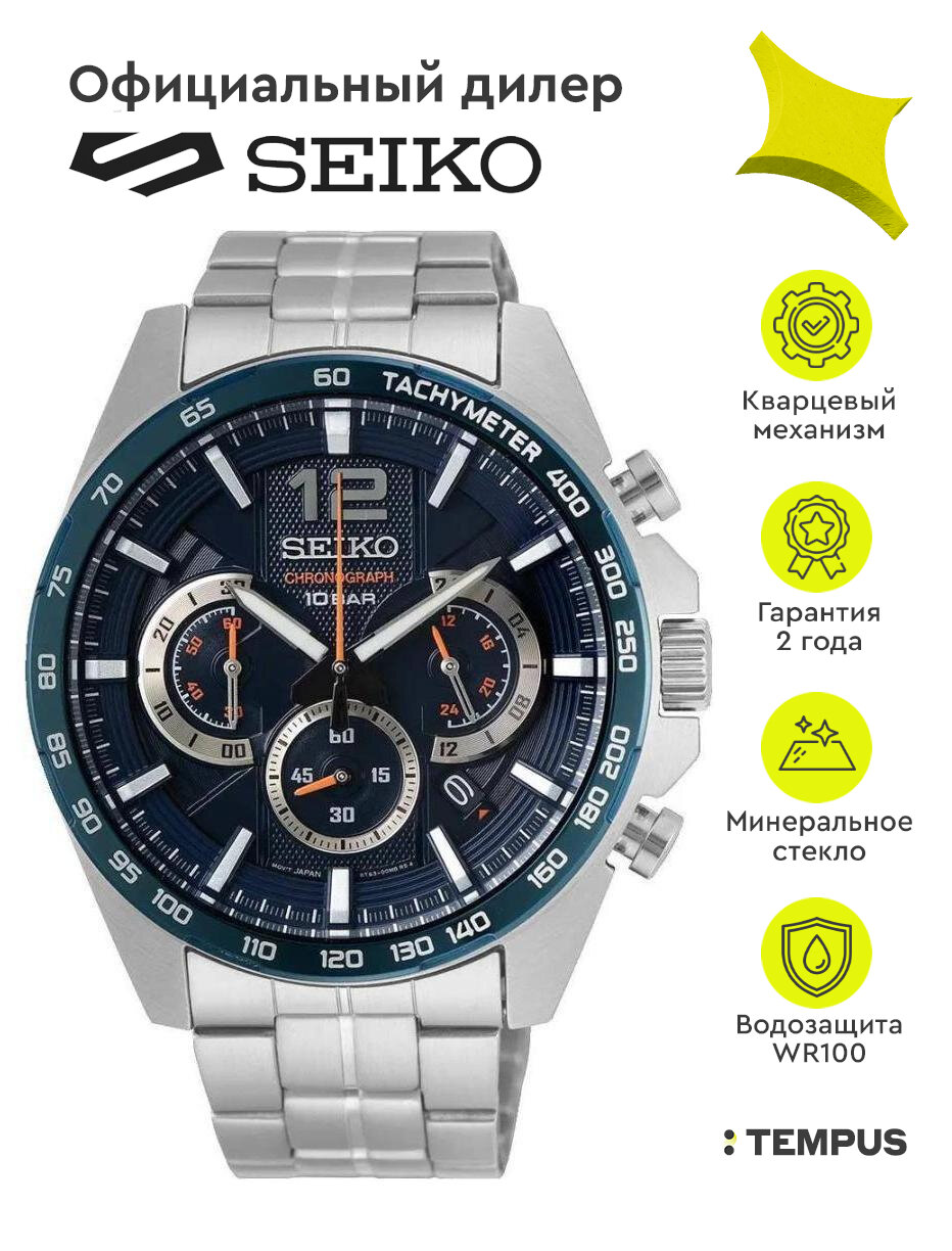 Наручные часы SEIKO SSB345P1, серебряный, синий