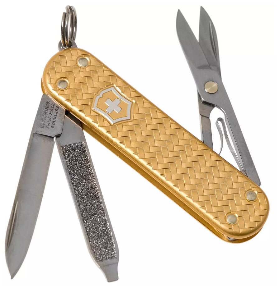 Нож-брелок Victorinox Classic SD Precious Alox Brass Gold, 58 мм, 5 функций, золотистый .