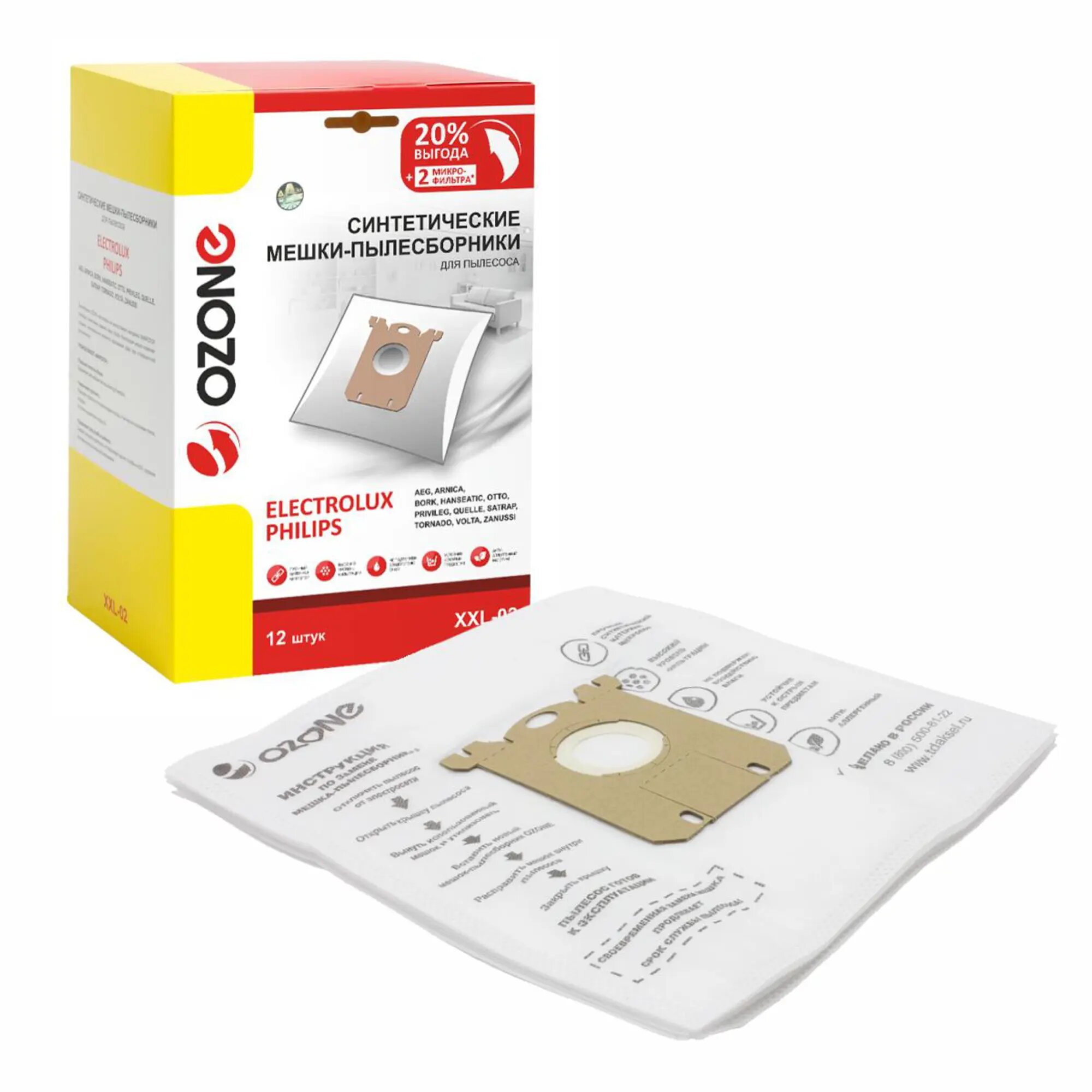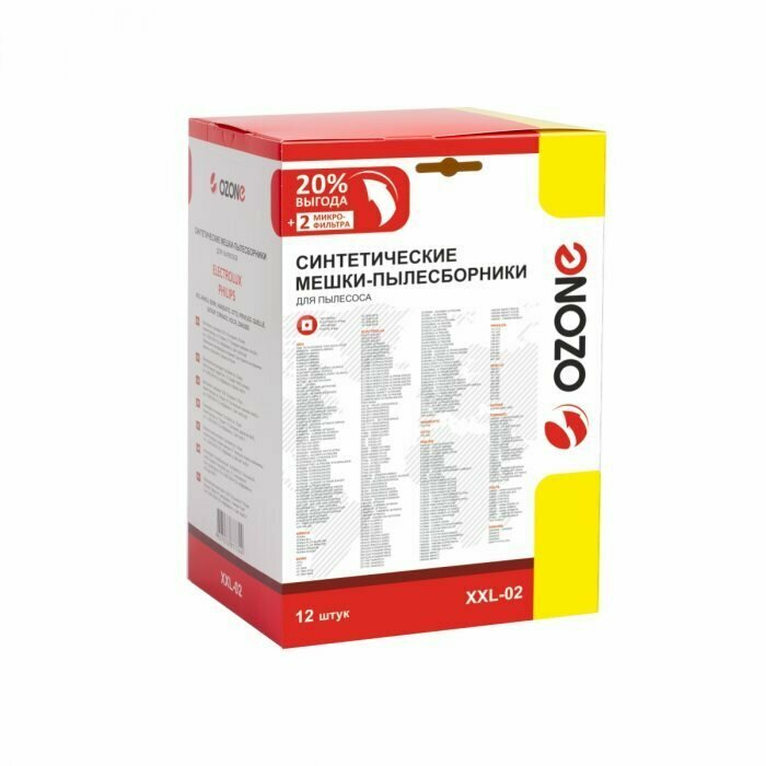 Пылесборник OZONE XXL-02 для пылесоса ELECTROLUX синтетическа, многослойный (тип оригинального мешка: S-Bag.) 12 шт + 2 микрофильтра