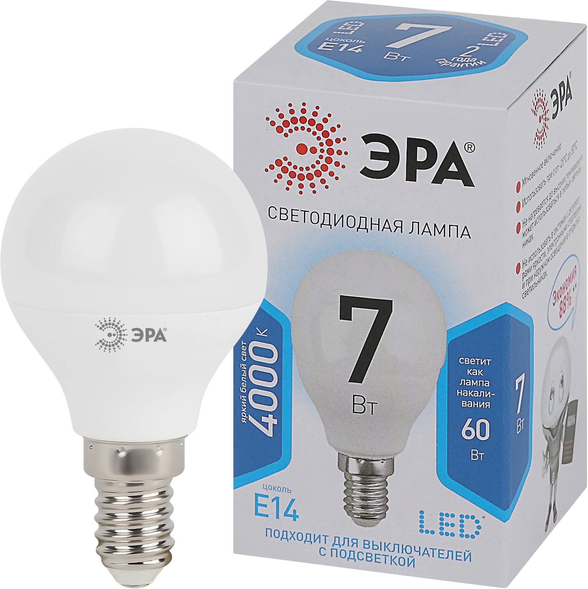 ЭРА Б0020551 Лампа светодиодная ЭРА LED P45-7W-840-E14 (диод, шар, 7Вт, нейтр, E14)