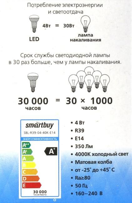 Ниже Вы можете прочитать отзывы на Лампа светодиодная Smartbuy SBL-R39-04-40K-E14 цоколь Е14 4 Вт, ознакомится с подробными характеристиками, посмотреть интересные обзоры и фотографии на Лампа светодиодная Smartbuy SBL-R39-04-40K-E14 цоколь Е14 4 Вт.