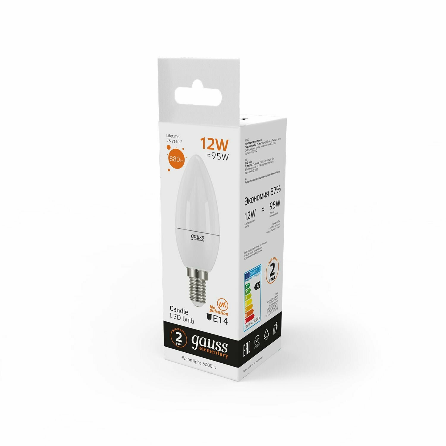 Сохранить10шт/уп. Лампа LED Свеча 12Вт 230B B35 E14 880Лм 3000К Свет Теплый белый арт. 33112 Gauss, уп. 10шт интересное: