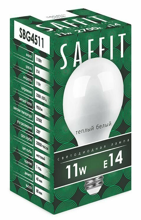 Ниже Вы можете прочитать отзывы на Лампа светодиодная SAFFIT SBG4511 Шарик E14 11W 2700K 55136, ознакомится с подробными характеристиками, посмотреть интересные обзоры и фотографии на Лампа светодиодная SAFFIT SBG4511 Шарик E14 11W 2700K 55136.