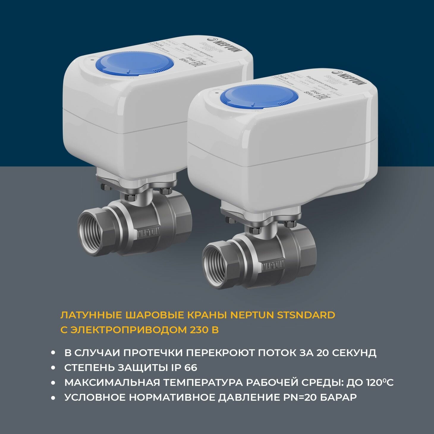 | Подробная комплектация | Модуль управления - 1 шт; Датчик контроля протечки воды SW007 - 2 шт; Кран шаровой с электроприводом МК 220В 3/4" - 2 шт |