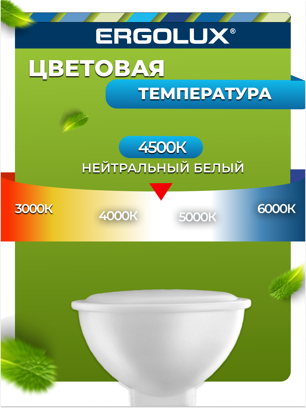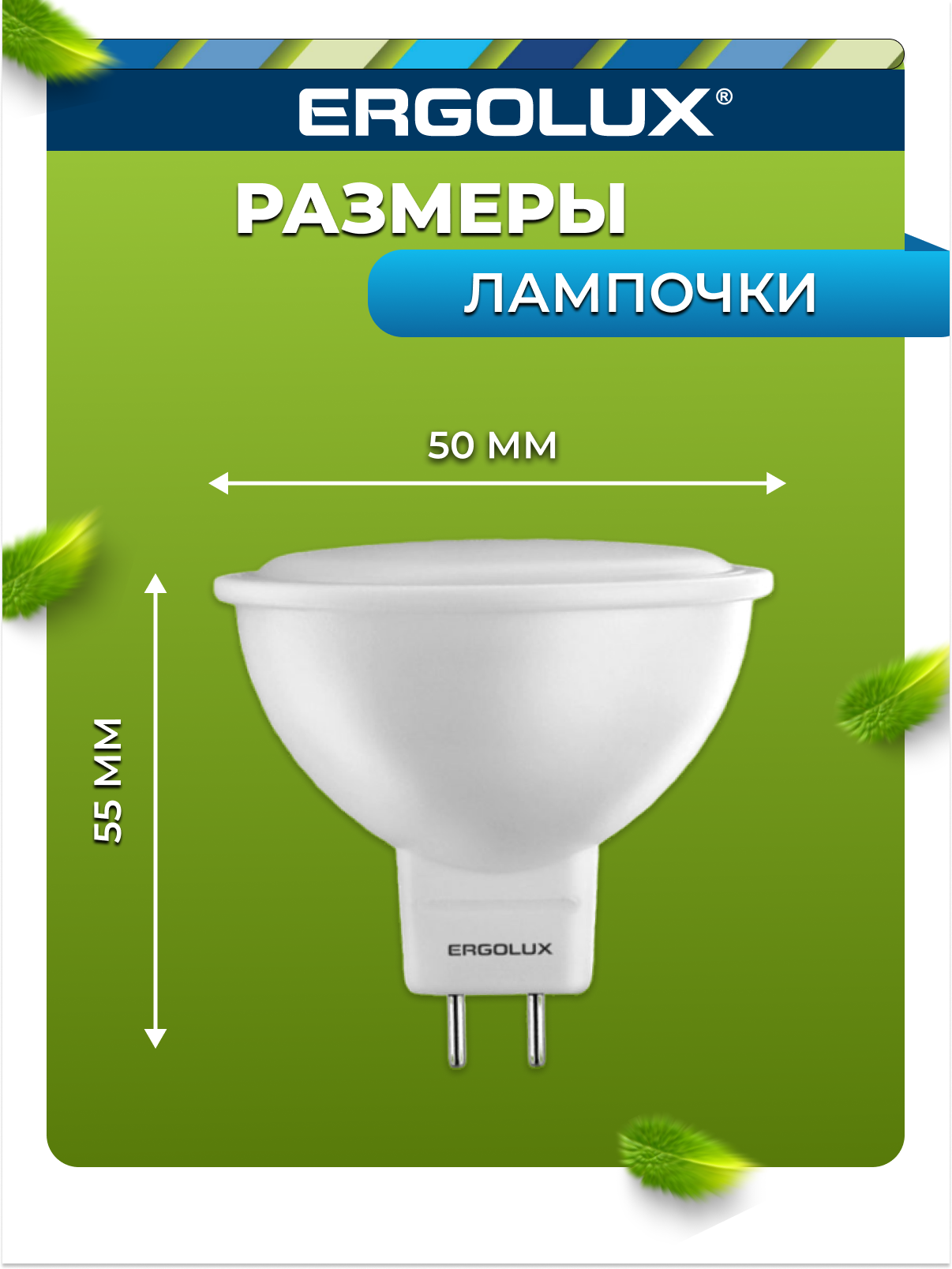 Лампочка светодиодная Ergolux GU5,3 7Вт, 6К, дневной белый свет, комплект 10шт