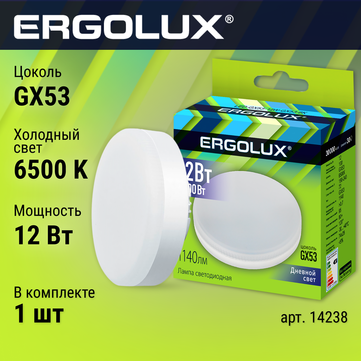 Лампочка светодиодная Ergolux GX53 12W 6500К, холодный белый свет