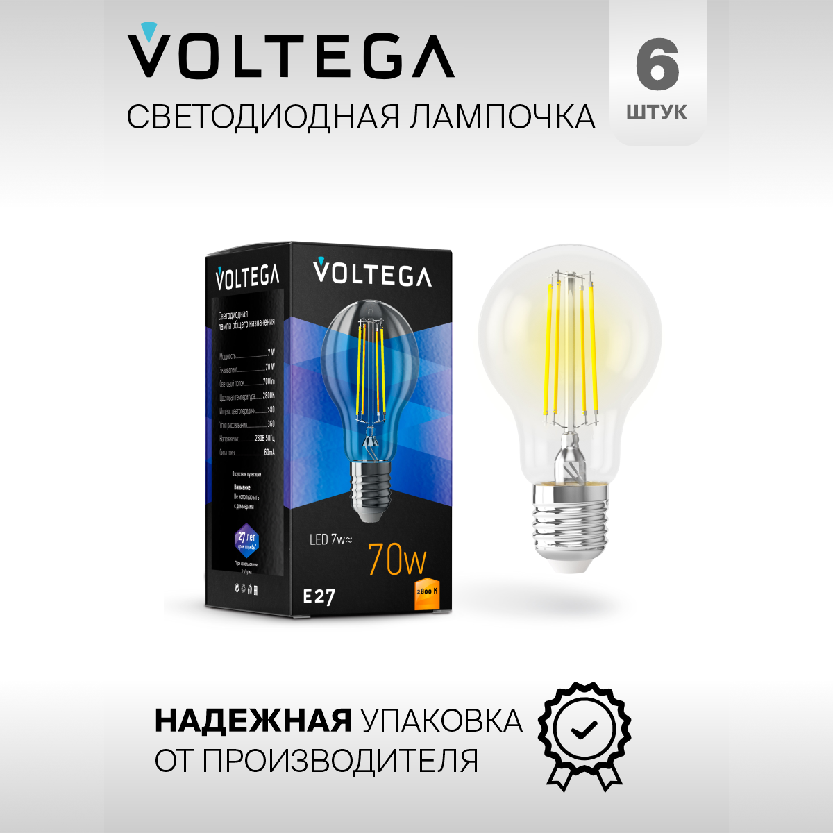 Ниже Вы можете прочитать отзывы на Лампочка светодиодная E27 форма груша 7W теплый свет Voltega Crystal A60 2800K упаковка 6 штук, ознакомится с подробными характеристиками, посмотреть интересные обзоры и фотографии на Лампочка светодиодная E27 форма груша 7W теплый свет Voltega Crystal A60 2800K упаковка 6 штук.