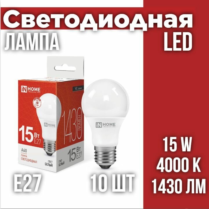 СохранитьЛампа светодиодная LED-A60-VC 15Вт 230В Е27 4000К 1430Лм IN HOME, 10 шт интересное: