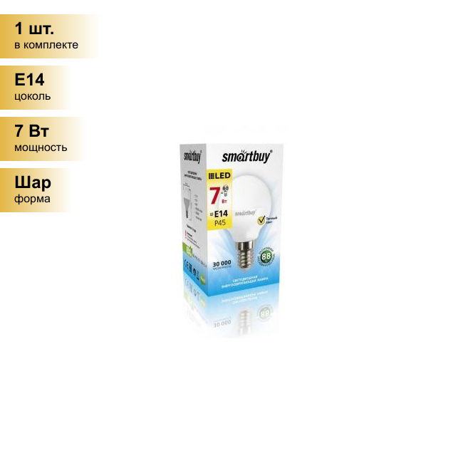 Лампочка SMARTBUY SBL-P45-07-30K-E14 E14, 7 Вт, белый