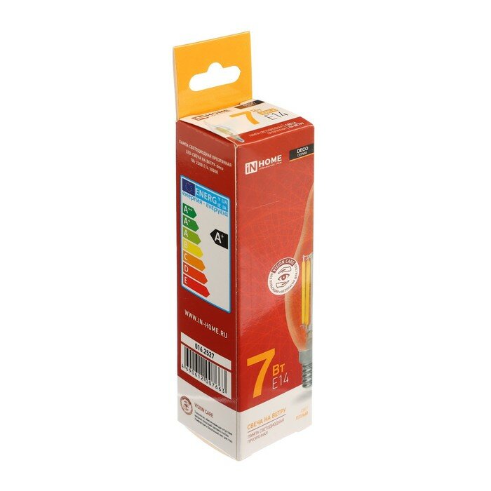 INhome Лампа светодиодная IN HOME led-свеча на ветру-deco, Е14, 7 Вт, 3000 К, 630 Лм