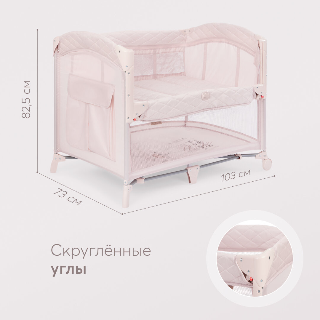 Манеж детский складной Happy Baby WILSON, манеж кровать для новорожденных с колёсами, регулировка высоты, сумка-чехол в комплекте, розовый