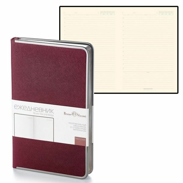 BrunoVisconti Ежедневник недатированный А5, 136 листов BRIDGE, обложка искусственная кожа, серебряный срез, бордовый