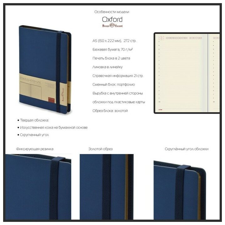Ежедневник Bruno Visconti "Oxford" недатированный, А5, синий