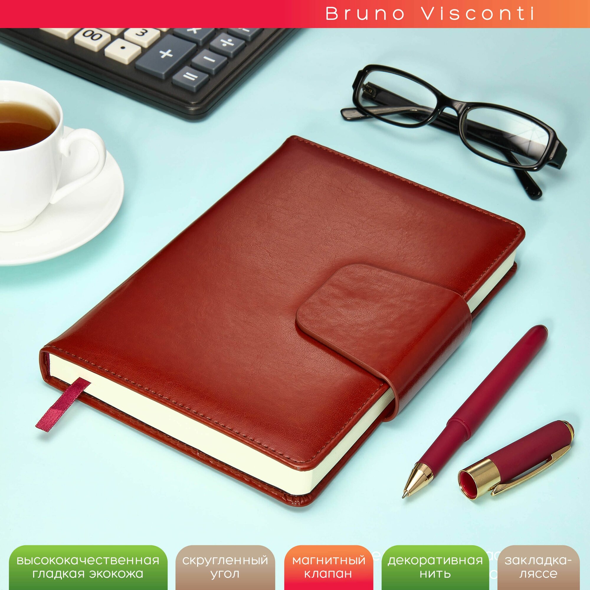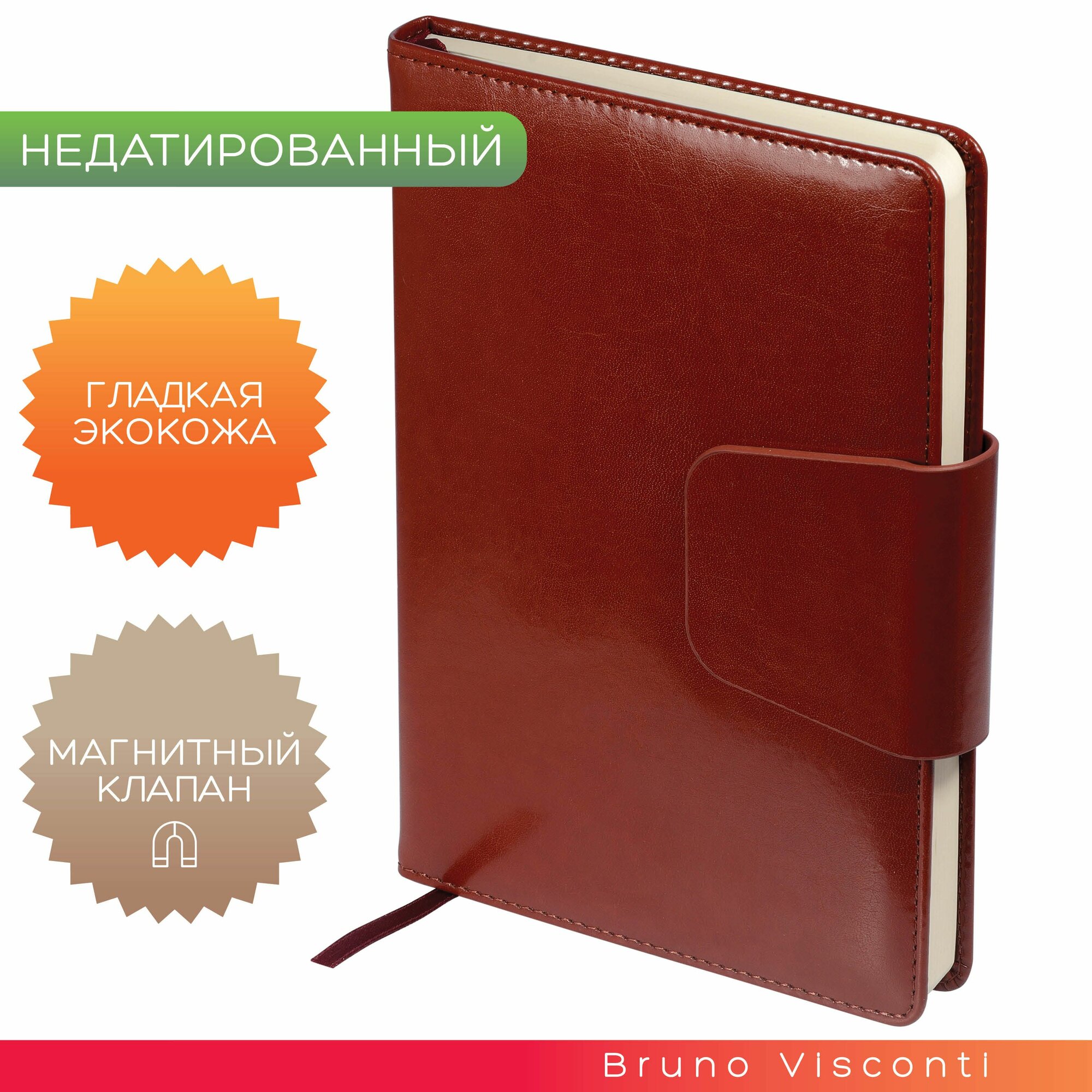 Ежедневник Bruno Visconti PRESTIGE A5 145x210мм недатированный искусственная кожа 160л книжный переплет магнитный хлястик красный