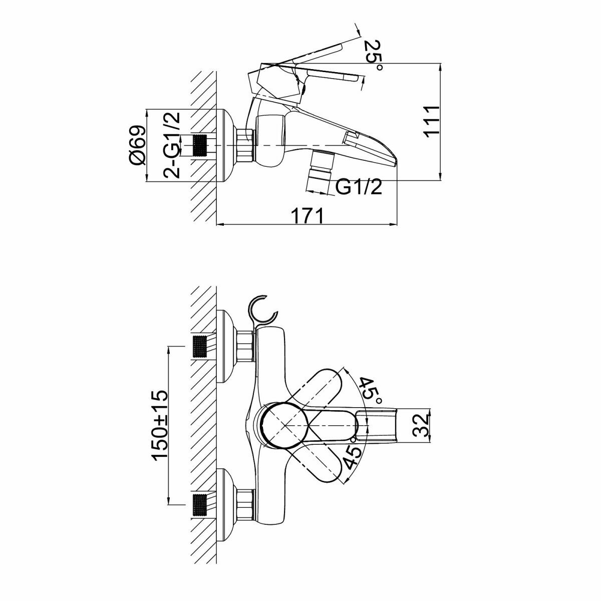 | Длина излива | 171 мм |