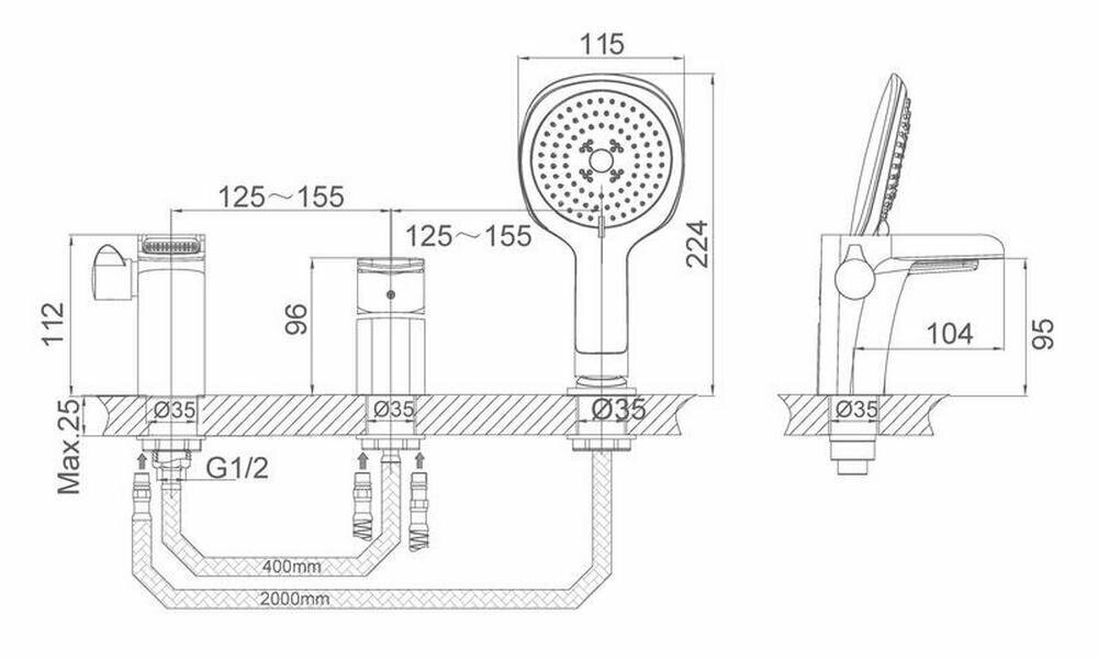 | Монтаж | на борт ванны |