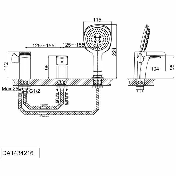Смеситель на борт ванны D&K DA1434216