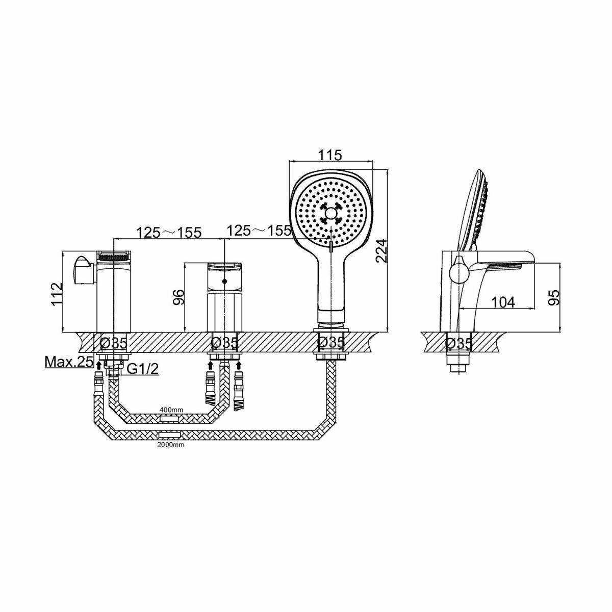 | Монтаж | на борт ванны |