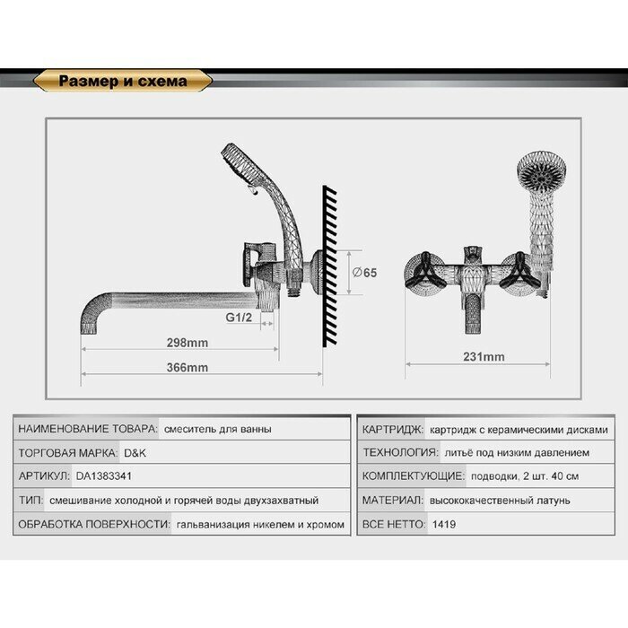 Смеситель для ванны D&K Hessen Goethe (DA1383341)