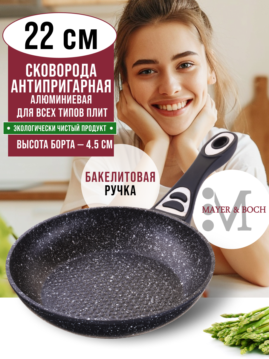 Сковорода алюминиевая Mayer&Boch 22 см с антипригарным мраморным покрытием 25621