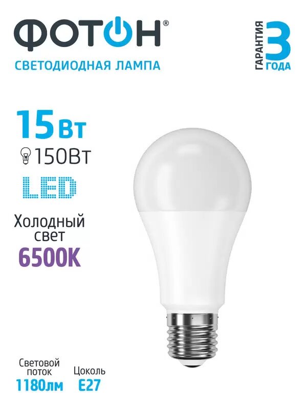 Фотон Лампа светодиодная LED A60 15W E27 6500K 23394 интересное: