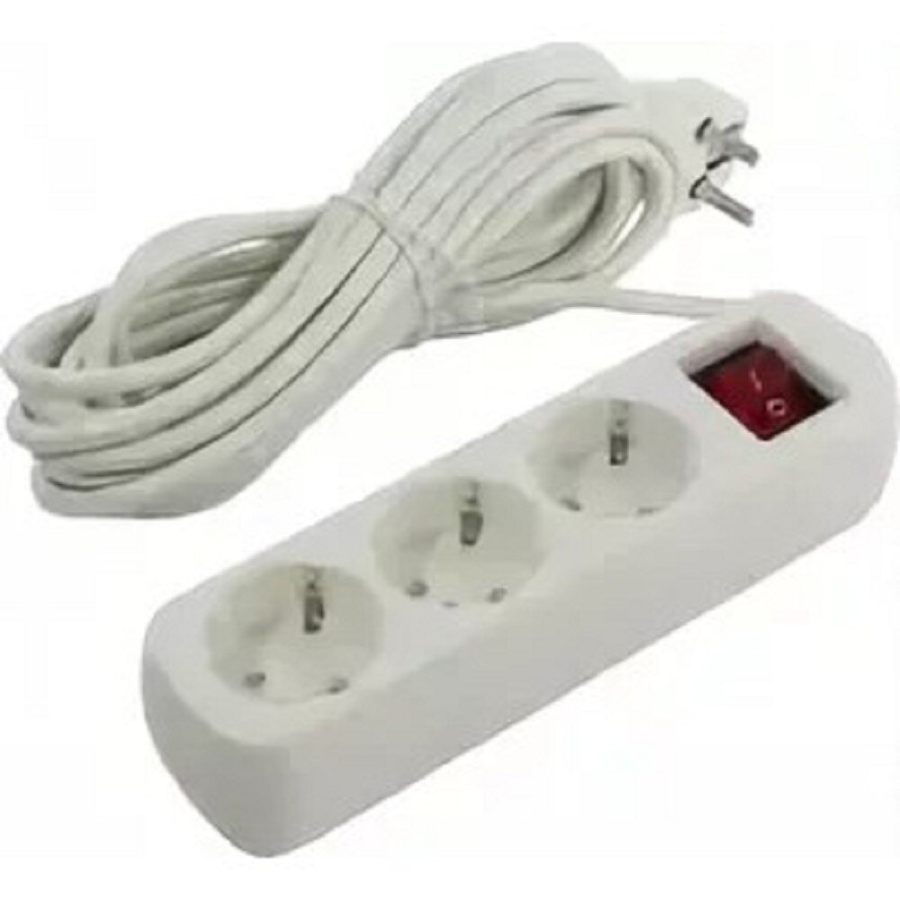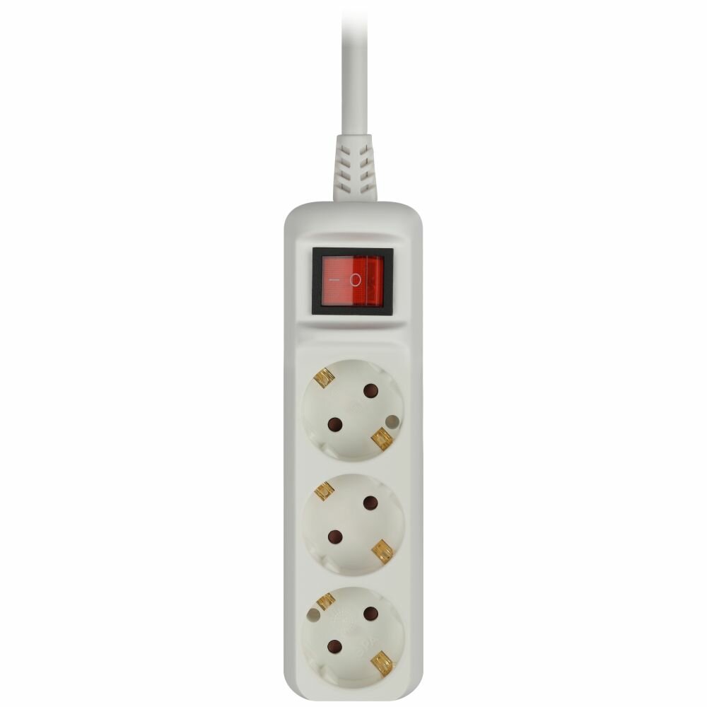 Купить Удлинитель электрический 3 розетки 3 метра 16А ЭРА U-3es-3m с заземлением с выключателем белый