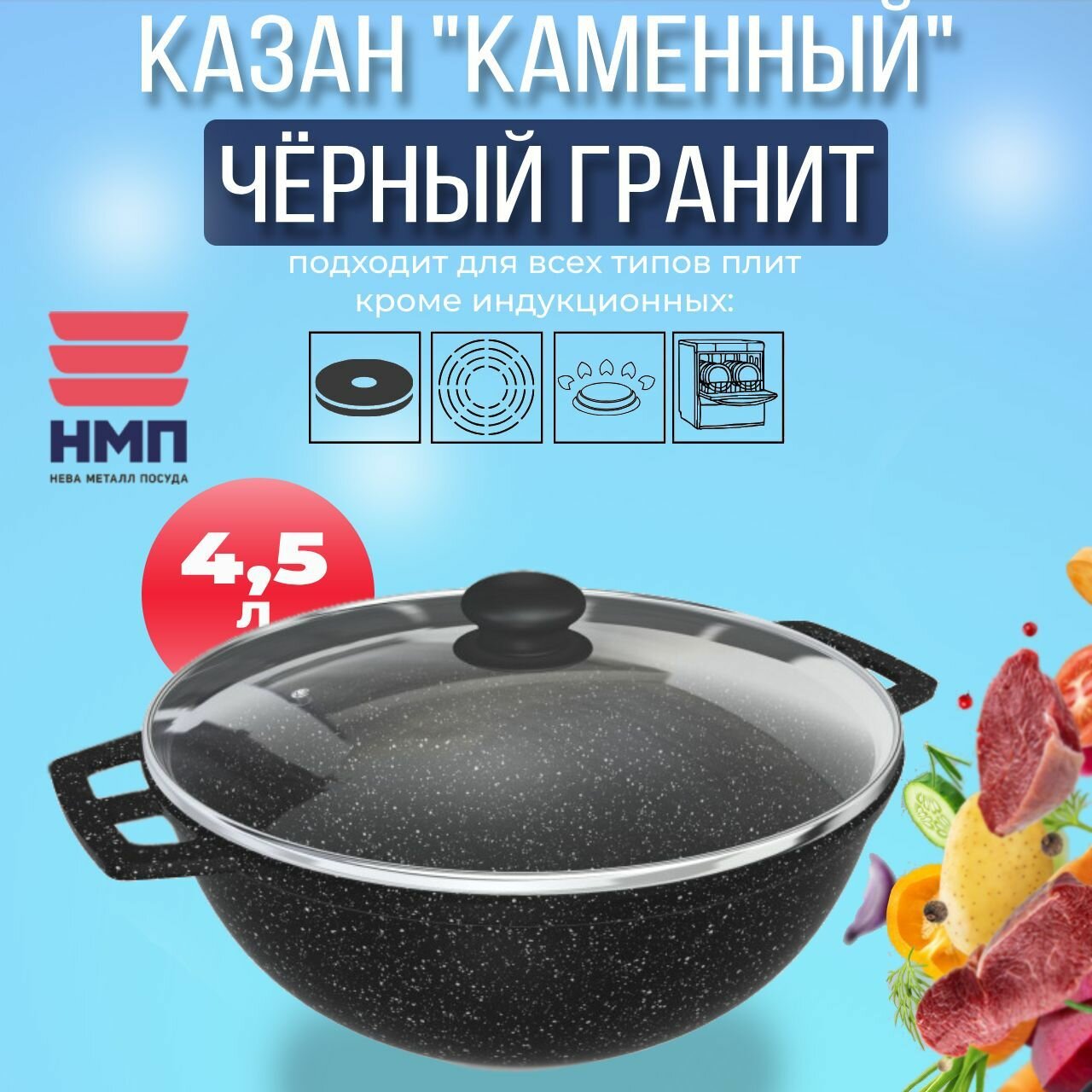 Казан Нева Металл Посуда НМП "Каменная" Черный гранит 4,5л сферический, 186845сф