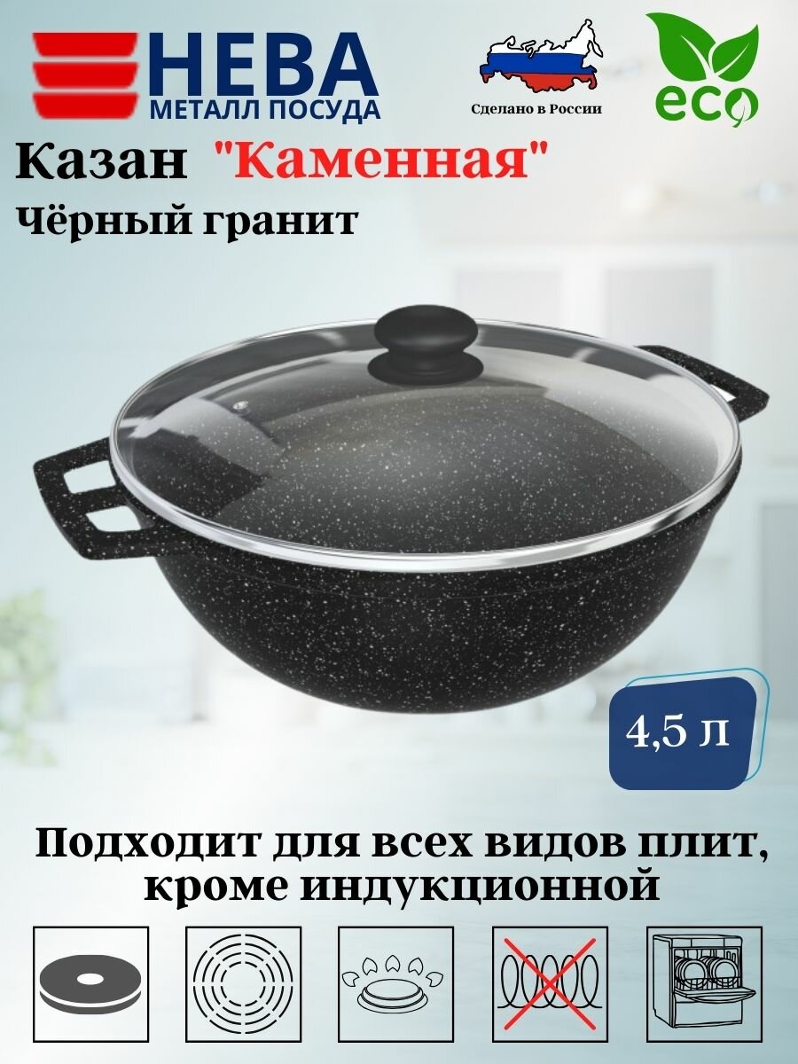 Купить Нева металл посуда 186845сф Казан сферический со стекл. крышкой 4,5л "Каменная" Черный гранит
