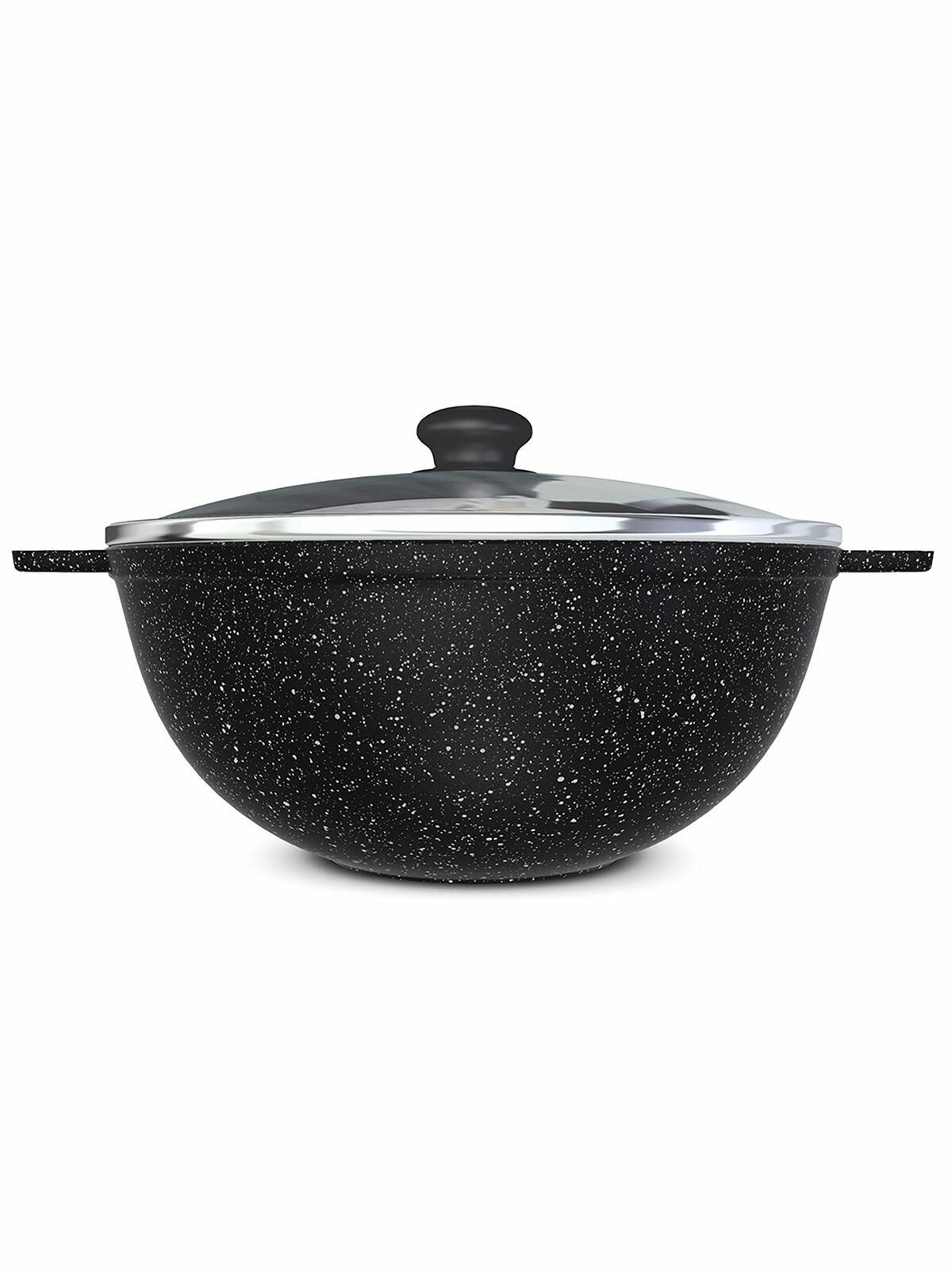 Казан со стекл. крышкой 5л "Каменная" Чёрный гранит НМП