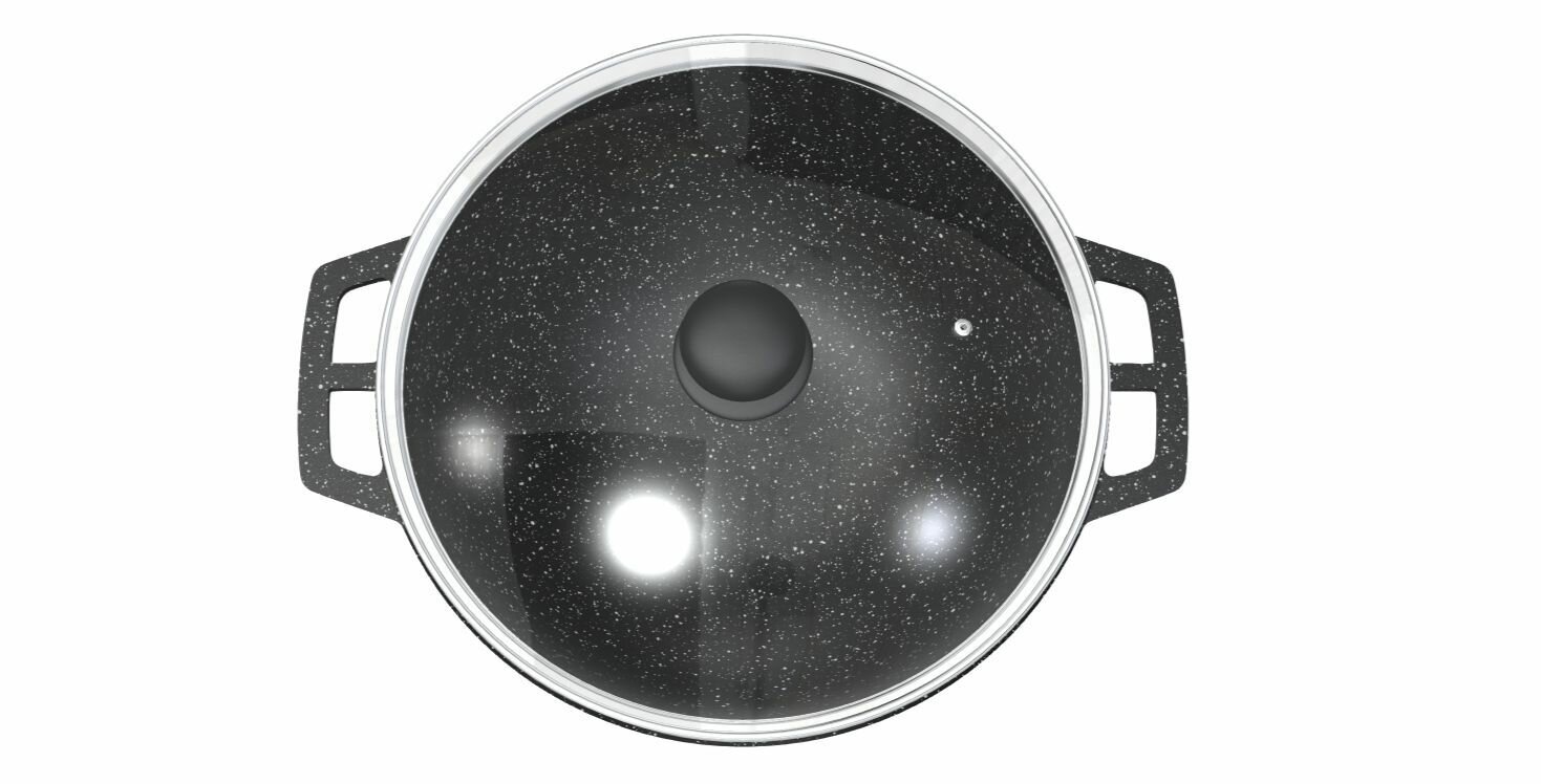 Казан 3,0 л со стекл. крышкой каменная черный гранит