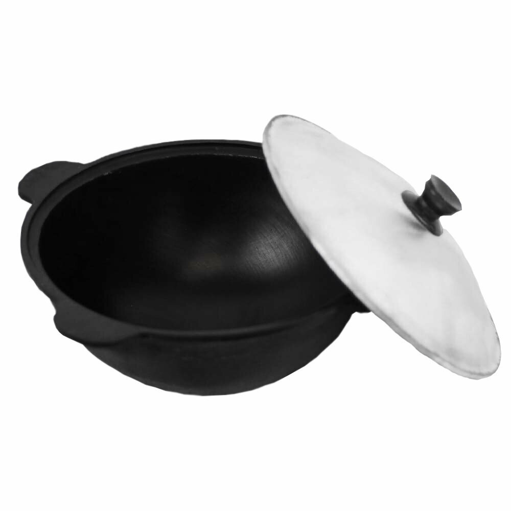 Узбекский чугунный казан (плоское дно) 4 л с крышкой Наманган