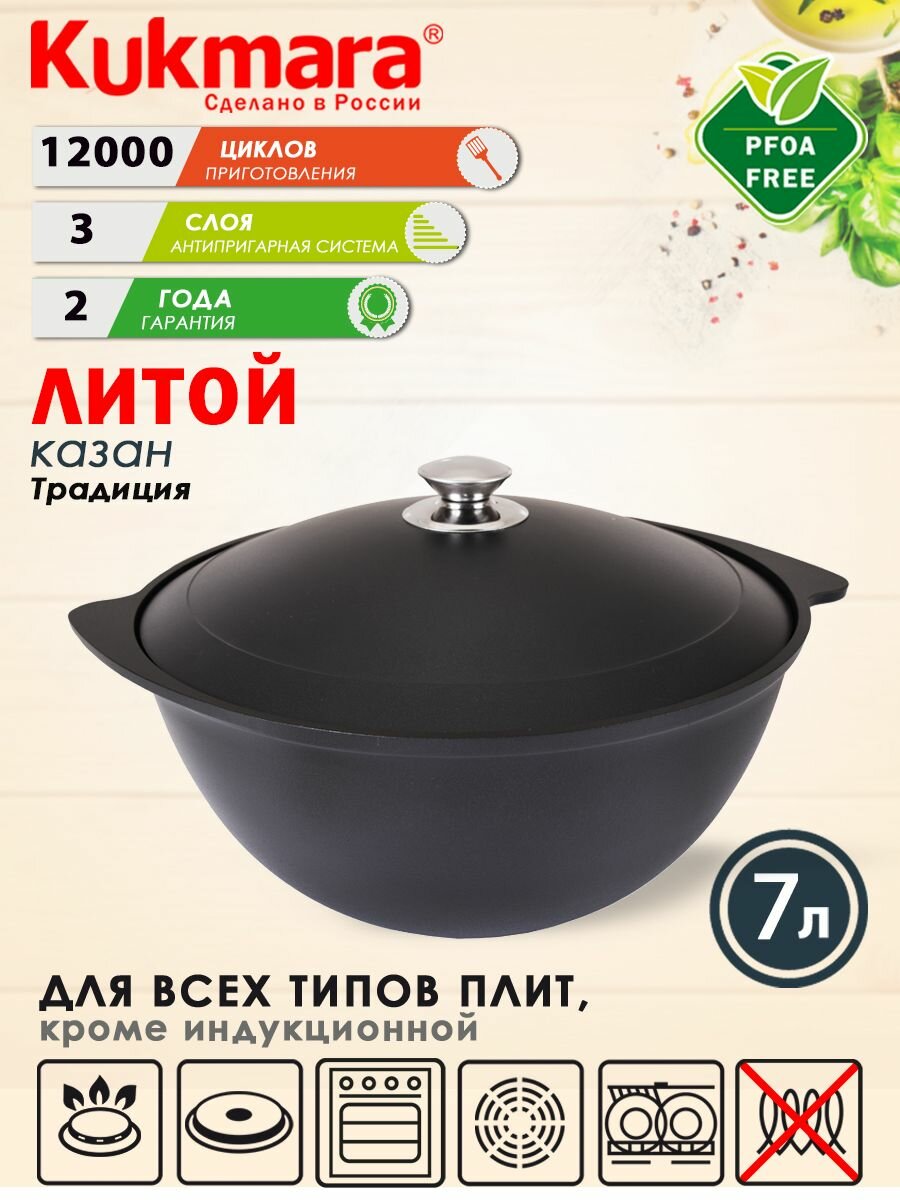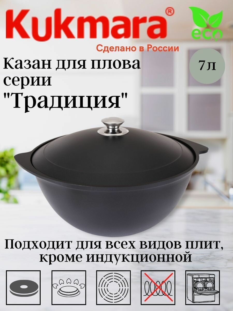 Казан антипригарный литой 7л с алюминиевой крышкой Традиция ТМ KUKMARA