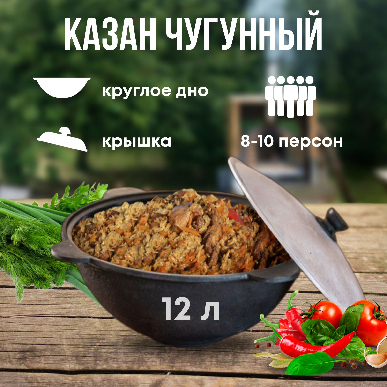 Казан чугунный плоское дно с крышкой 12 л интересное: