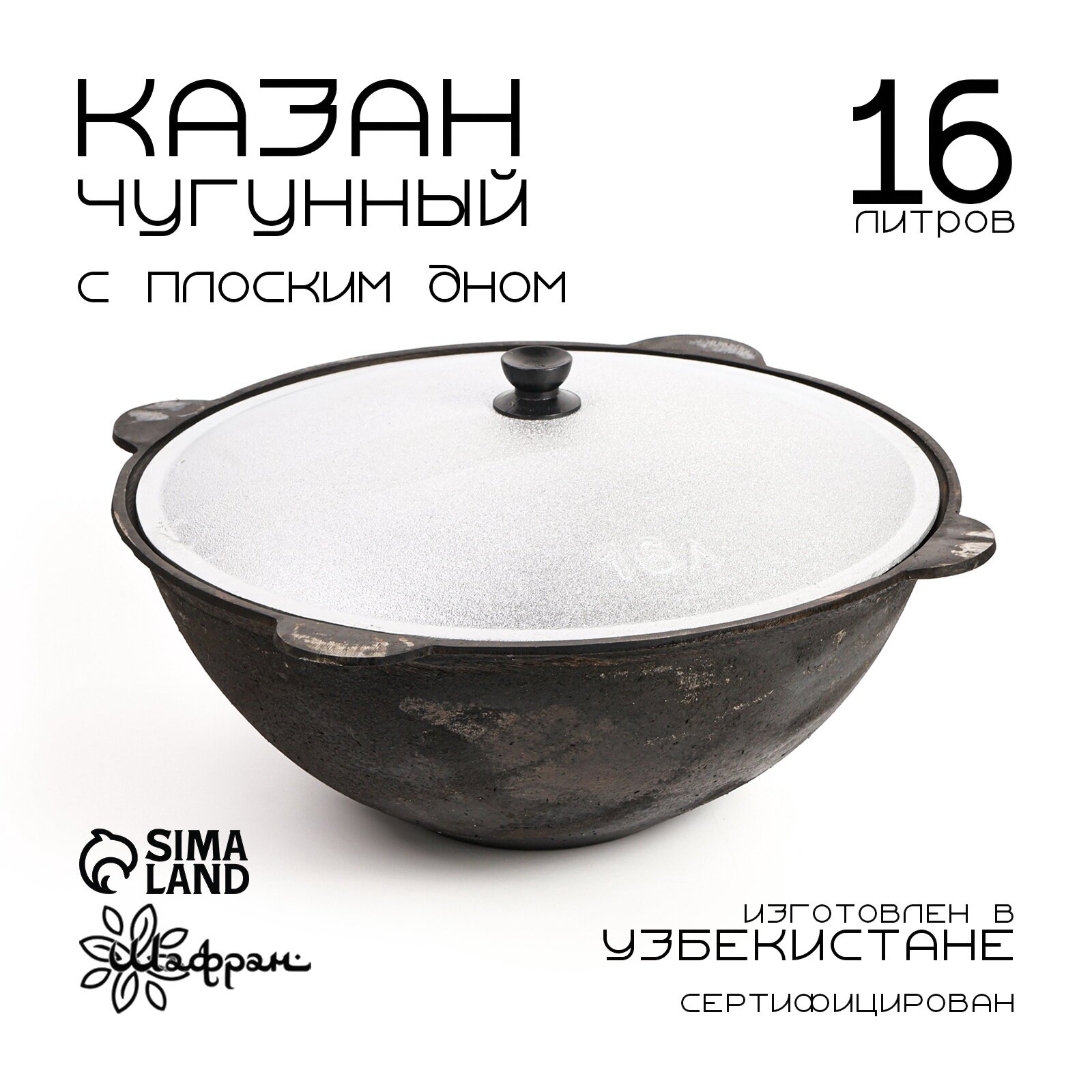 Казан чугунный, 16 л, плоское дно, алюминиевая крышка Шафран 2737154 . интересное: