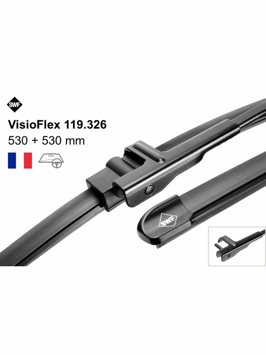 SWF 119326 Комплект щеток стеклоочистителя VISIOFLEX бескаркасных 530/21`+530/21` (боковой штырь) | перед |