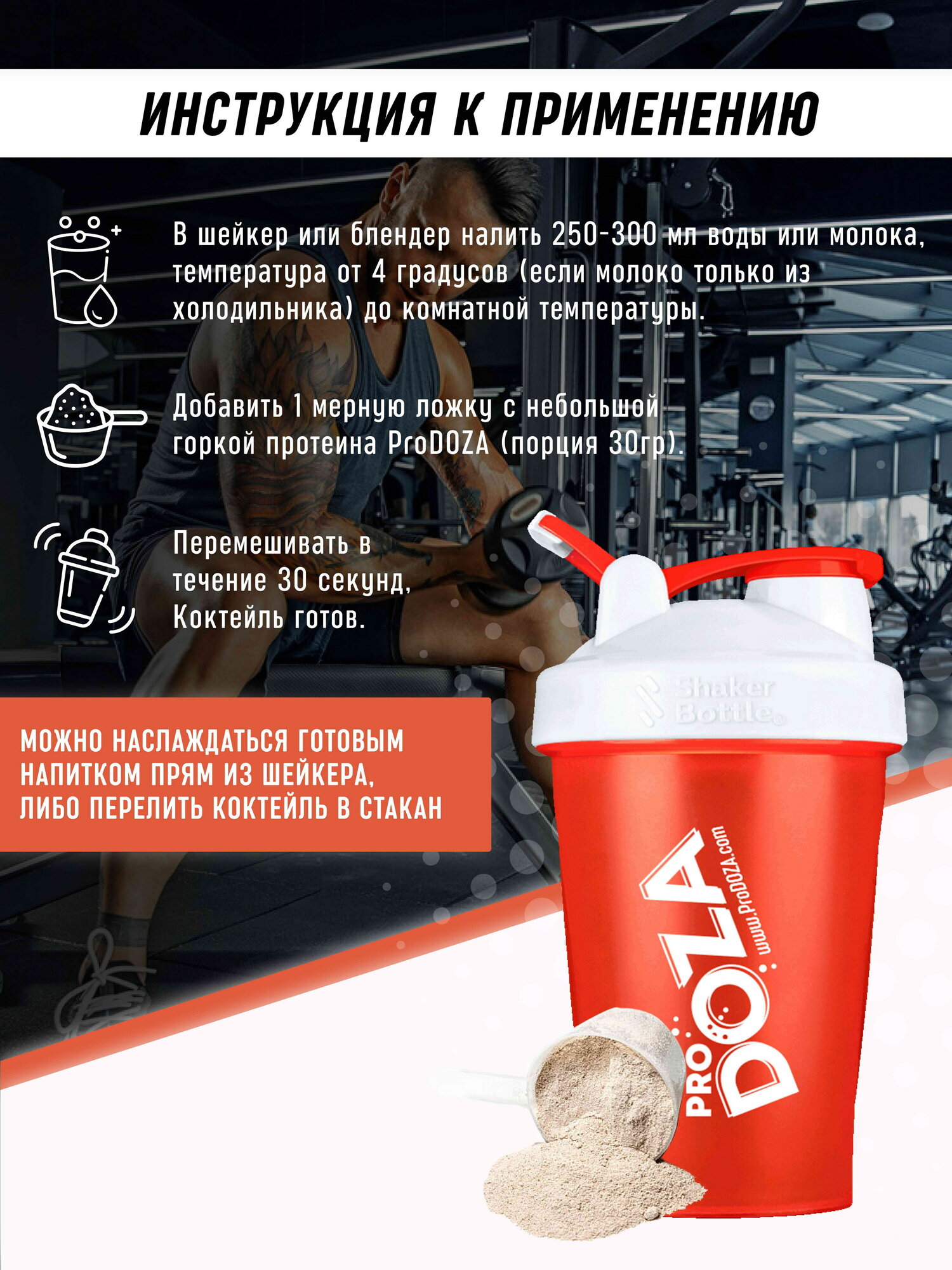 | Дополнительная информация | рекомендации по применению: Смешайте в шейкере содержимое 1 мерной ложки с 200-250 мл воды или молока. Принимайте протеиновый коктейль после тренировки, а также утром и вечером, в зависимости от потребности в белке. Для похудения заменяйте один прием пищи на прием протеина.; состав: Сывороточного белка концентрат, пищевой ароматизатор, лецитин, ксантановая камедь, сукралоза. |