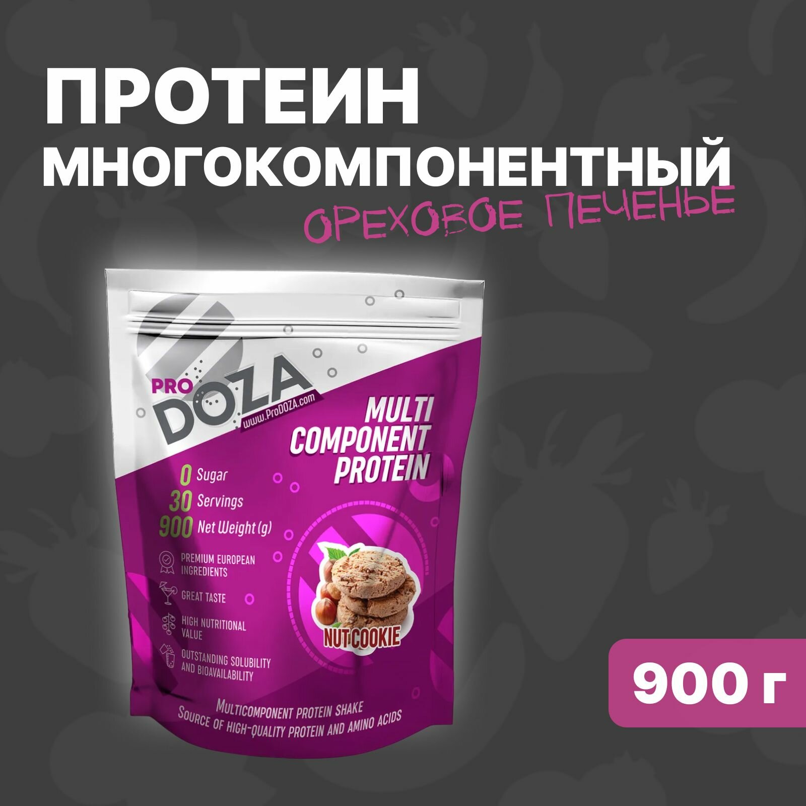 Протеин сывороточный ProDOZA Whey Protein белковый коктейль Ореховое печенье, 900 г