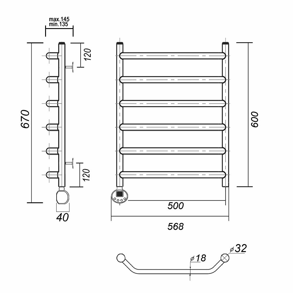Полотенцесушитель электрический Domoterm Лаура П6 500x600 EL слева