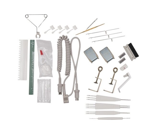 | Подробная комплектация | - фантура верхняя, нижняя; - каретки: основная, дополнительная; - нитеводитель; - вспомогательные пластины; - п-каретка; - нитеводитель платирования; - грузы, линейки, счетчик рядов, деккеры, запасные иглы, кулачки т.п. |