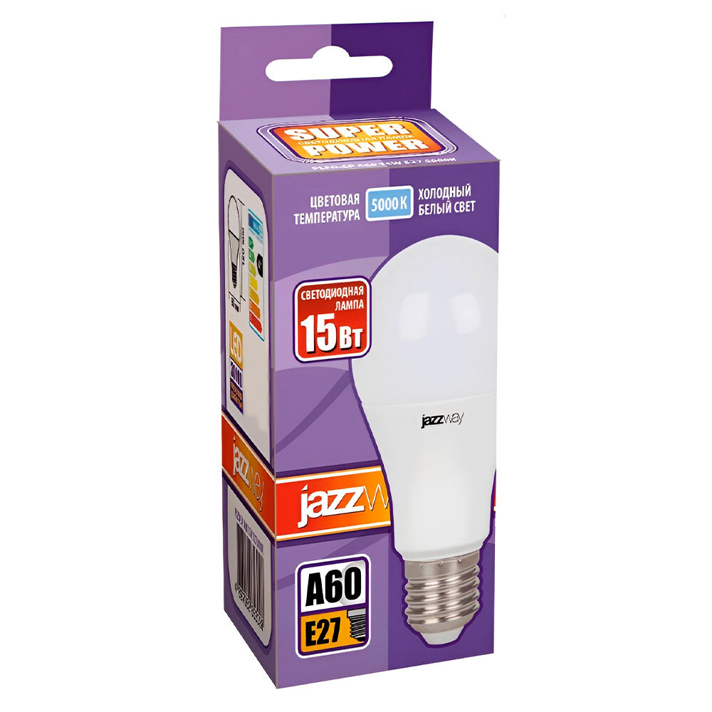 Лампа светодиодная jazzway PLED POWER 2853035, E27, A60, 15 Вт, 5000 К