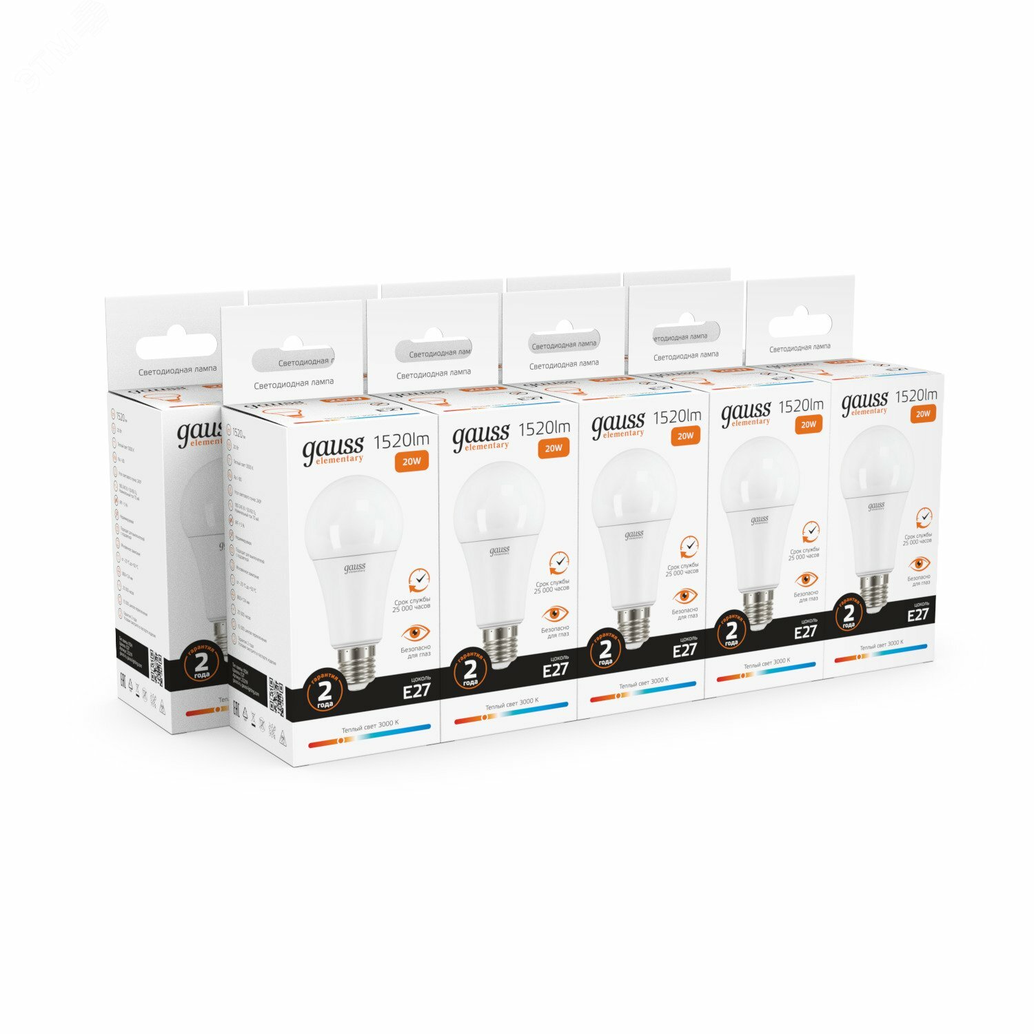 (10 шт)Лампа Gauss Elementary A60 20W 1520lm 3000K E27 LED 1/10/40