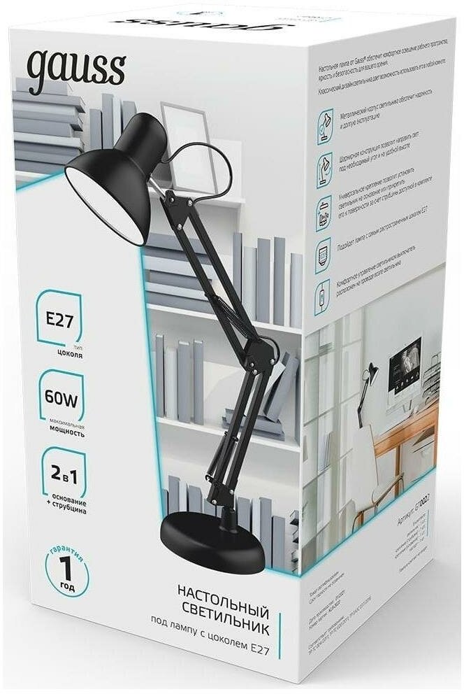 Настольная лампа GAUSS GTL002 60W 220-240V E27 черный струбцина и основание 1/12