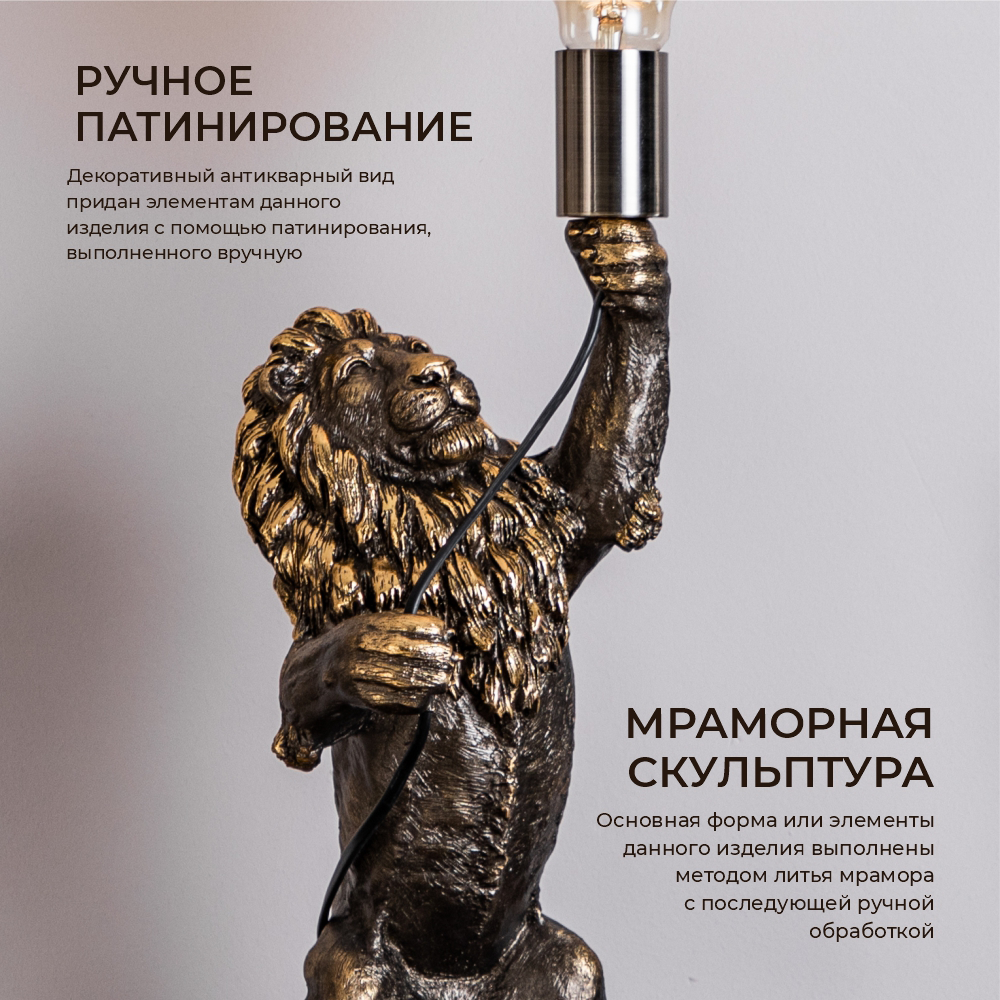 Настольный светильник Bogacho Лев Ричард бронзового цвета интересное: