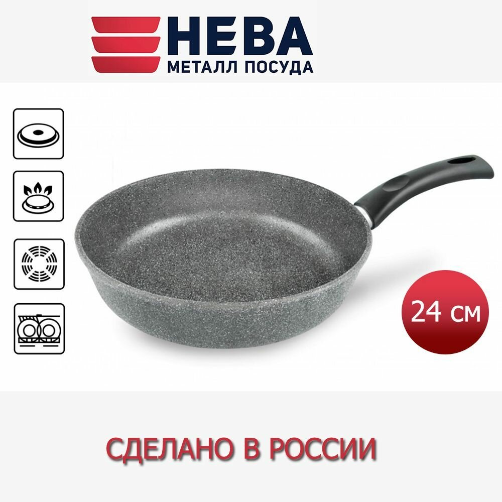 Сковорода Нева Металл Посуда НМП "Каменная" Серый гранит 24 см, 19124