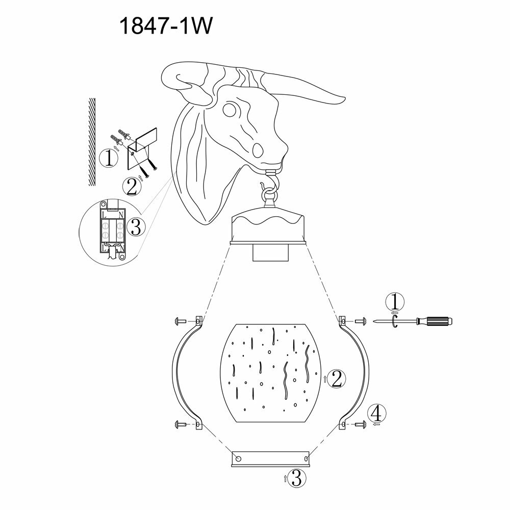 1847-1W, уличный светильник, D240xW360xH250, 1xE27x60W, IP44