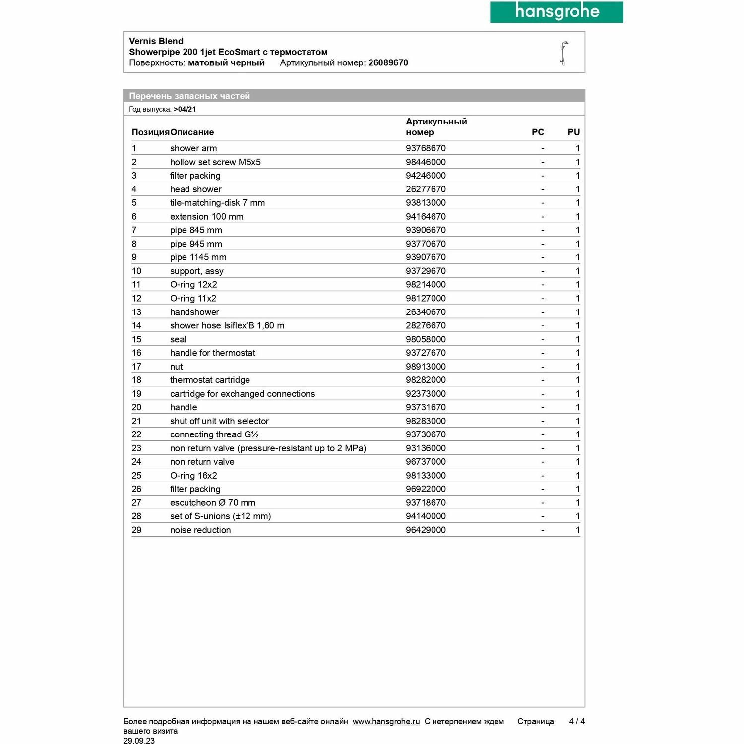 | Производитель | hansgrohe |