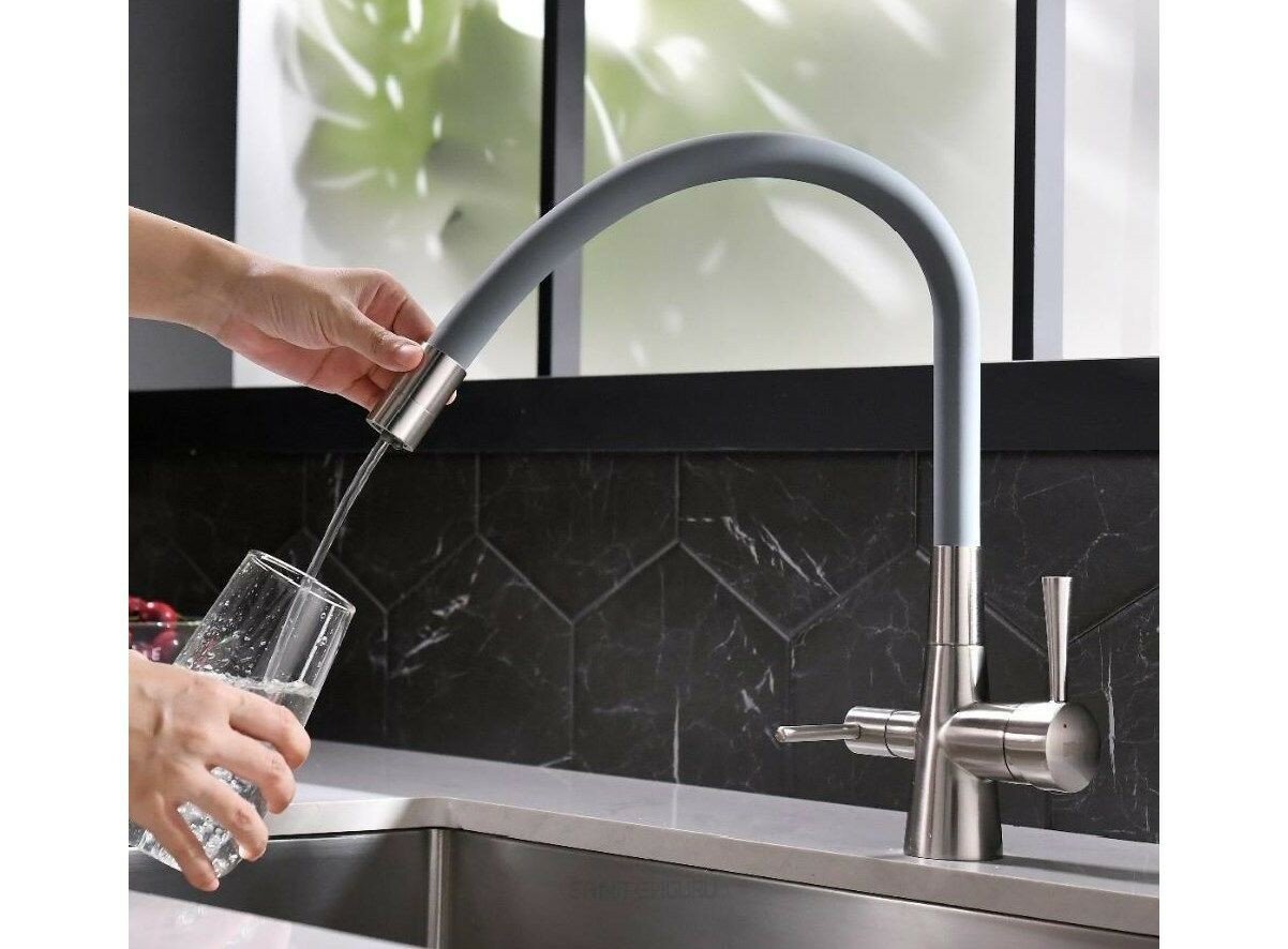 | Плюсы: | Достойный смеситель, красивый дизайн, приятный на ощупь гибкий излив, его можно регулировать как удобно, он подвижный, но жесткий. Не надо ставить второй кран для питьевой воды. |