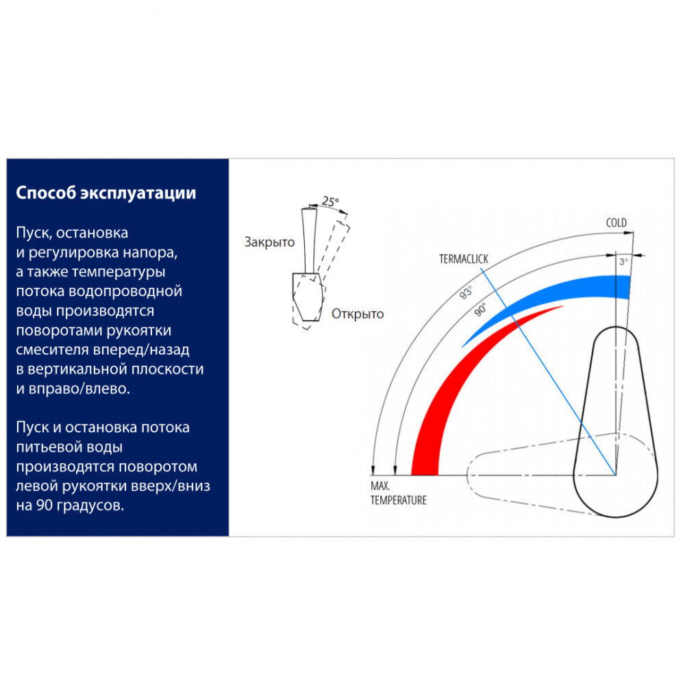 | Угол поворота рукоятки вертик. | 90 градусов |