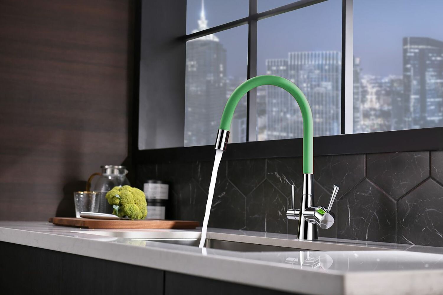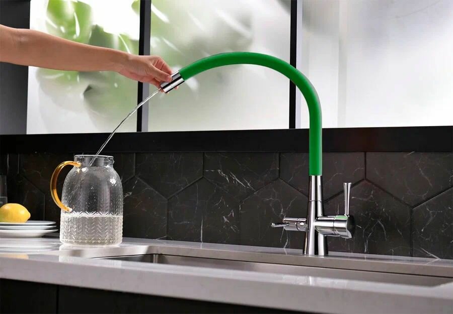 Смеситель для кухни, с гибким изливом, с подключением к фильтру питьевой воды, хром/зеленый LEMARK LM3074C-Green Comfort